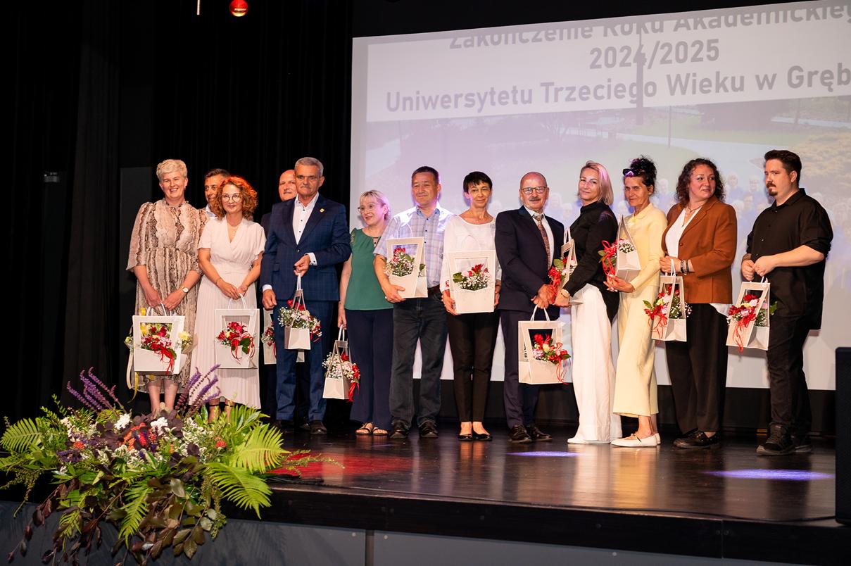 Dnia 6 czerwca 2025 . w sali Gminnego Ośrodka Kultury , studenci Uniwersytetu Trzeciego Wieku w Grębocicach uroczyście zakończyli rok akademicki 2024/2025. Na scenie zaprezentowali się uczestnicy warsztatów teatralnych,wokalno-instrumentalnych oraz energetyczna sekcja taneczna. „Moralność Pani Dulskiej” w wykonaniu naszych słuchaczy zachwyciła licznie zgromadzoną publiczność. Całość wieczoru dopełnił śpiew i taniec, który wprowadził nas w jeszcze bardziej radosny i pełen energii nastrój. Występom artystycznym towarzyszyła wystawa sekcji ceramiki i rzeźby. Koniec roku akademickiego to także czas podziękowań wszystkim zaangażowanym w życie naszego uniwersytetu : organizatorom, wykładowcom, instruktorom oraz słuchaczom za aktywność, entuzjazm i chęć rozwoju dzięki, którym nasza społeczność jest tak wyjątkowa i pełna pozytywnej energii.