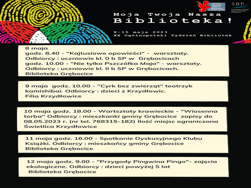 Do obchodów TYGODNIA BIBLIOTEK zostało 4 dni. Zapraszam wszystkich do odwiedzenia i skorzystania z bogactwa naszych (...)