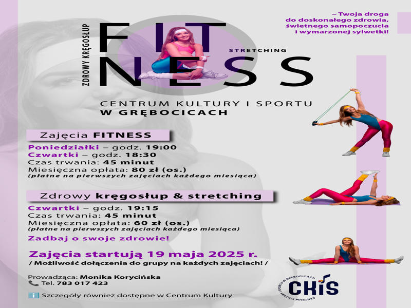 Centrum Kultury i Sportu w Grębocicach zaprasza na zajęcia fitness oraz zdrowy kręgosłup i stretching, które (...)