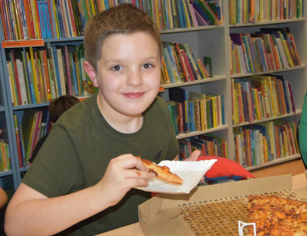 W programie znalazły się także inne zadania detektywistyczne, które trzeba było rozwiązać z użyciem lupy. Były również eksperymenty naukowe, które wzbudziły wiele emocji i ciekawości. Jak na każdej Nocy Bibliotek nie zabrakło również smacznej pizzy, która dodała energii do dalszej zabawy.