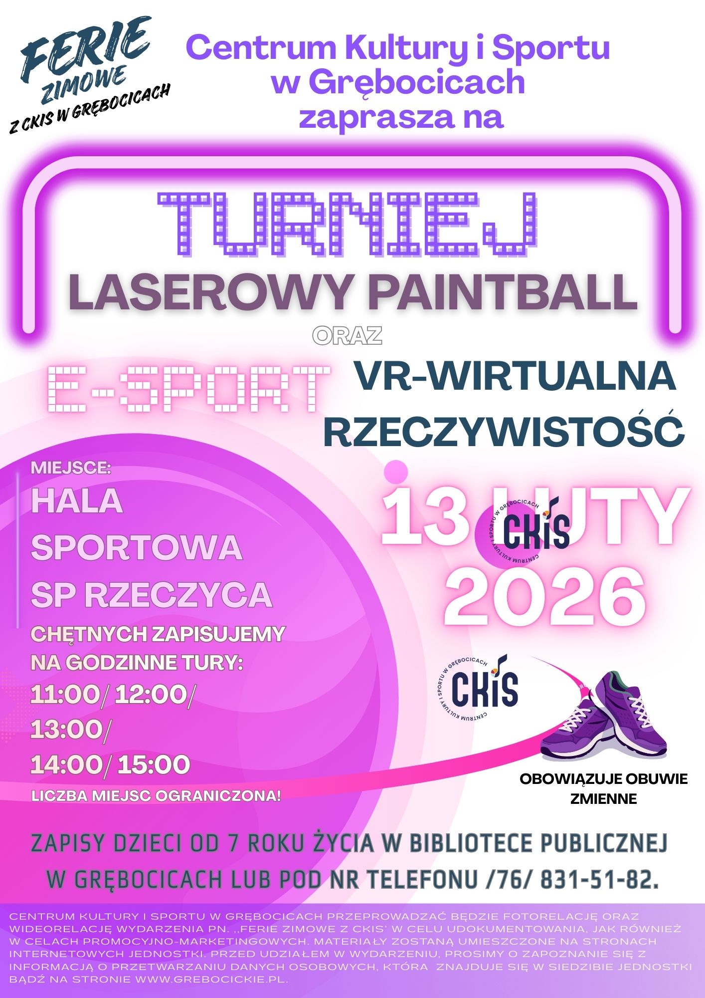 Ferie zimowe z CKIS Rafał Jaworski2026-01-22T23:41:31+01:0022 stycznia 2026|Aktualności| Zapraszamy na Turniej Laserowy Paintball oraz VR – Wirtualna rzeczywistość Udostępnij ten artykuł! FacebookTwitterLinkedInWhatsAppEmail