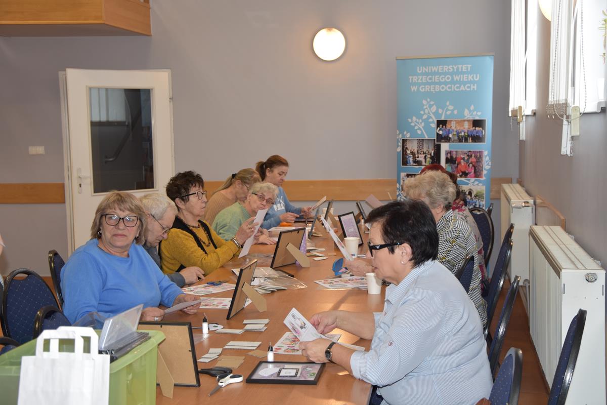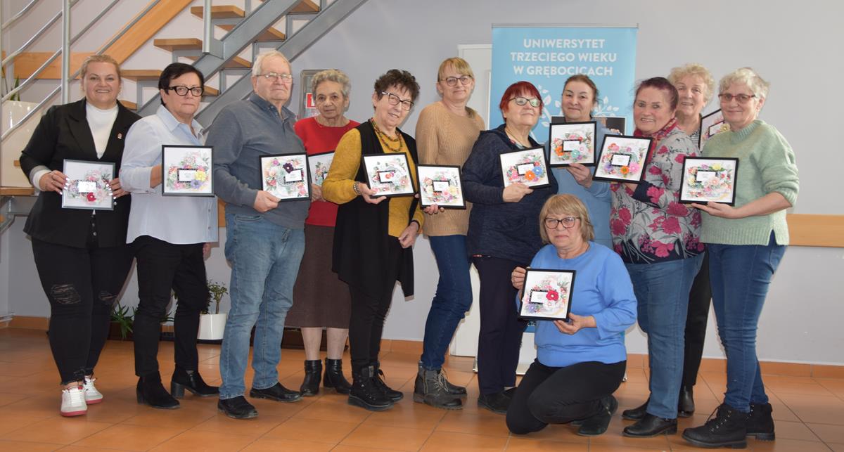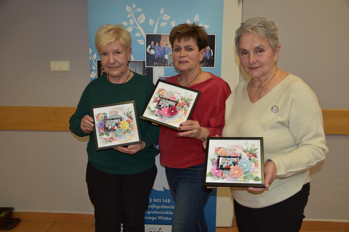 Kwiatowe layout (z angielskiego layout czyli układ plan) to jedna z form prezentacji zdjęcia wzbogacona o elementy ozdobne. Dla sekcji rękodzieła nie ma rzeczy niemożliwych więc pod okiem fachowca Pani Urszuli Piątkowskiej ale z dużą dozą niepewności przystąpiły do działania i tak powstały piękne ramki. Sfinansowano z budżetu Gminy Grębocice. Grębocice Przyjazna Gmina.