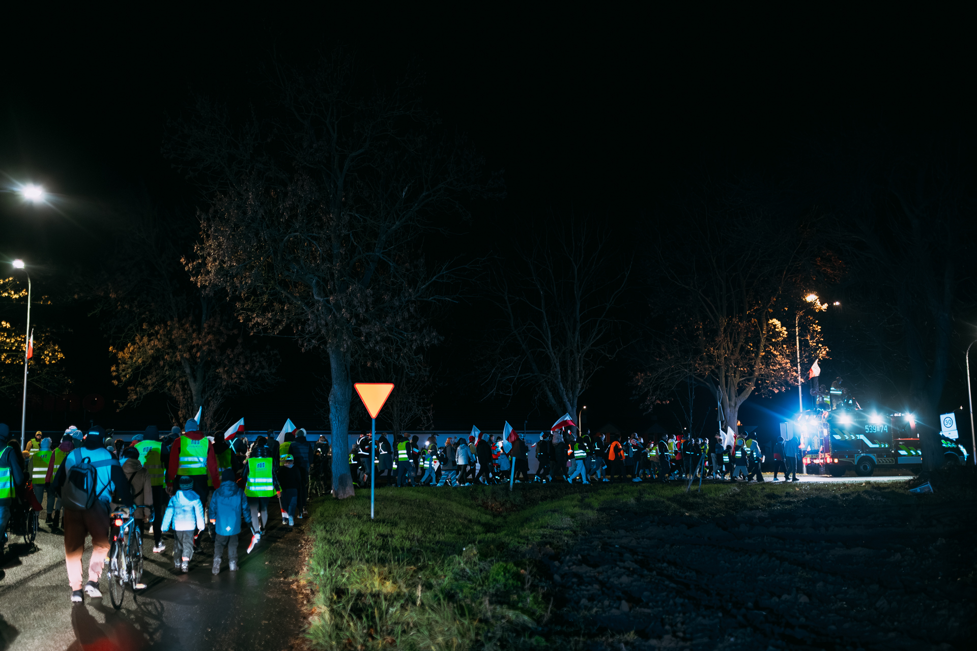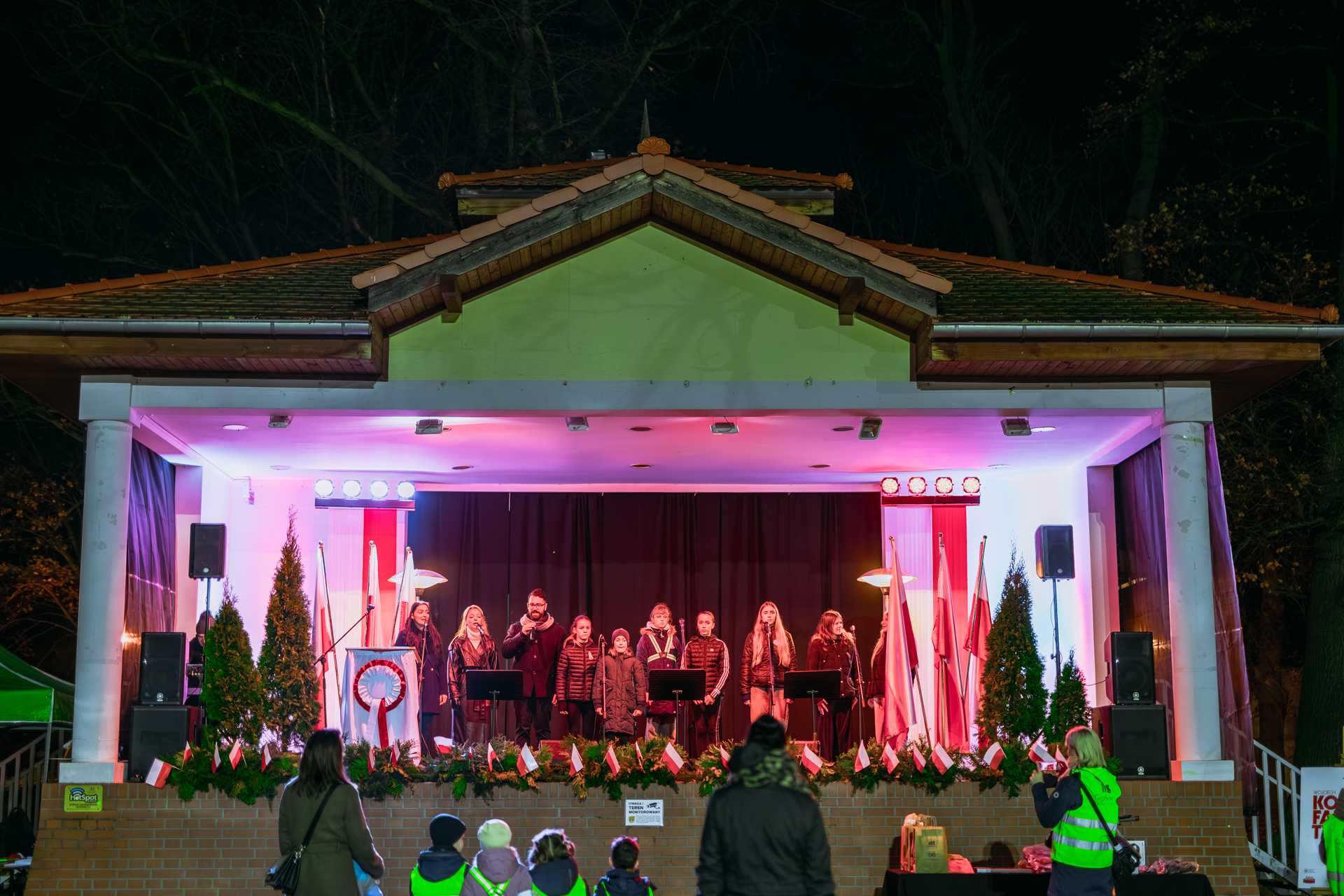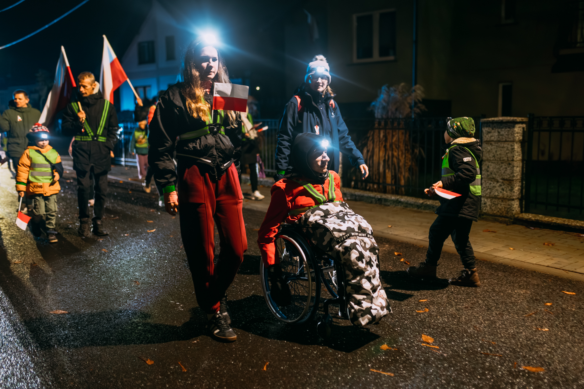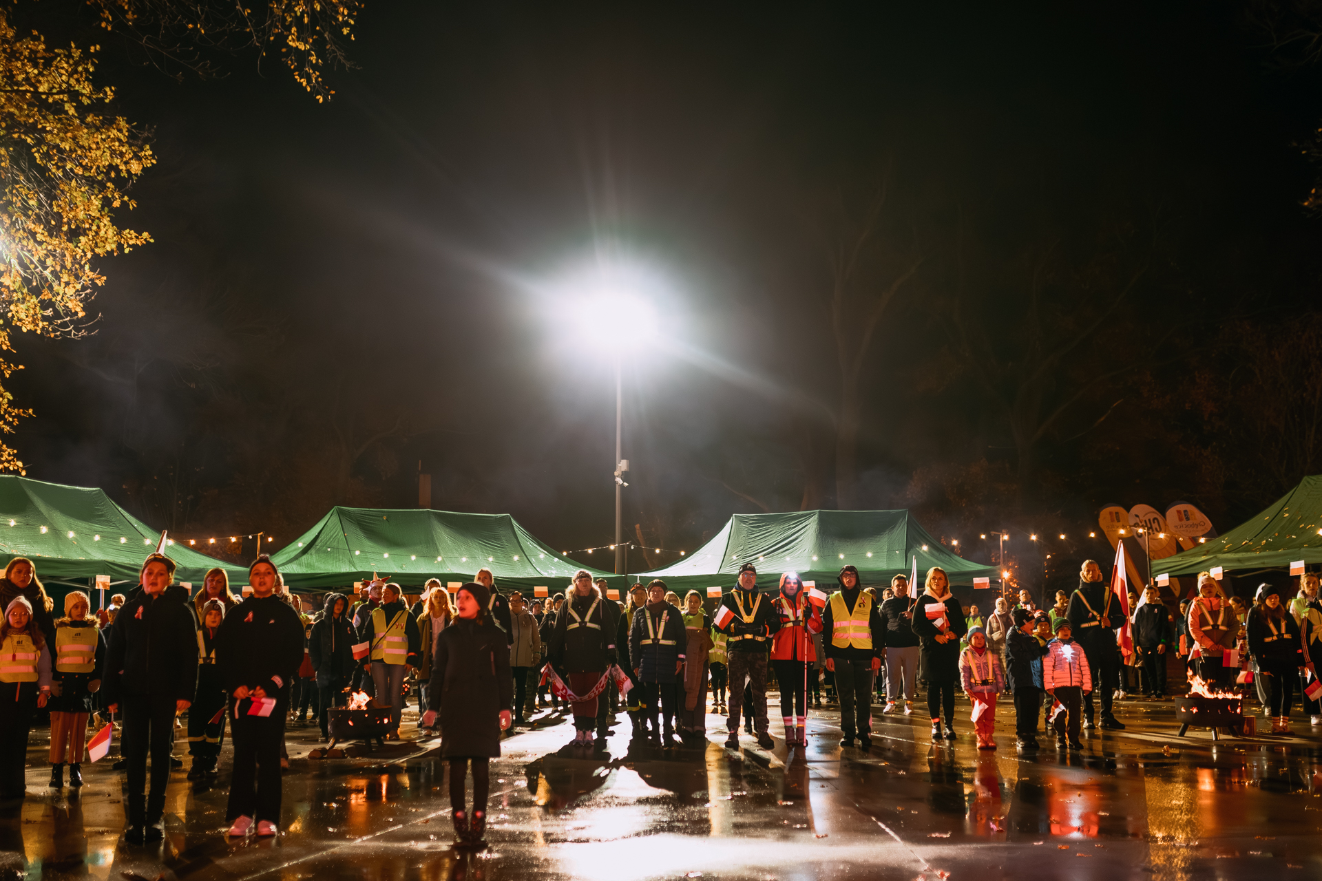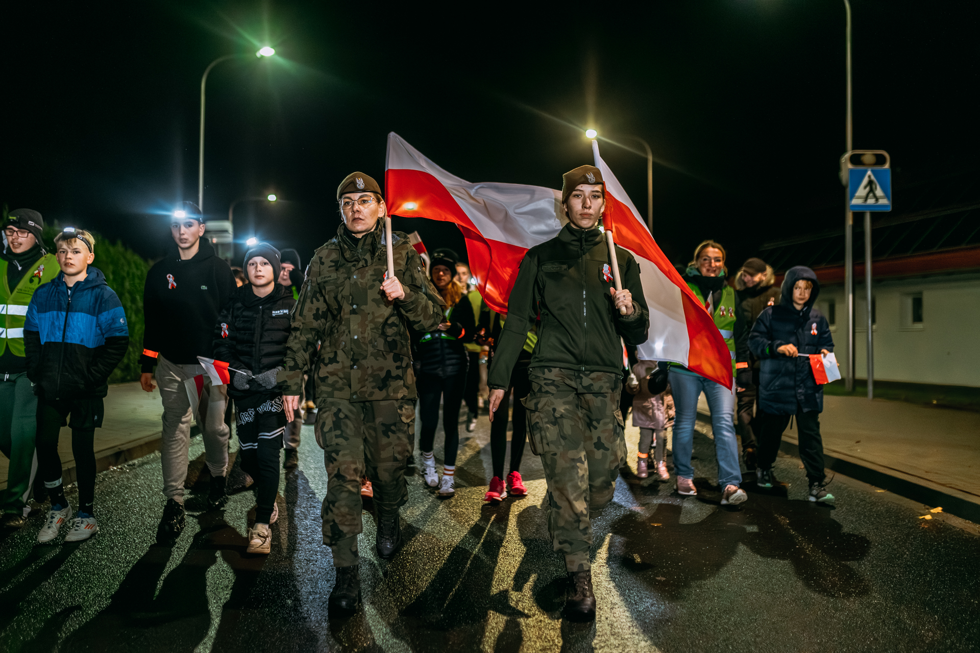 Punktualnie o 18:00 uczestnicy wyruszyli , pokonując trasę o długości 4 km i 400 metrów. Wędrówka odbyła się w klimacie skupienia, ale także radości ze wspólnego, międzypokoleniowego świętowania. Po dotarciu na metę, odbyło się uroczyste odśpiewanie hymnu narodowego i wciągnięcie flagi na maszt. Następnie odbył się konkurs ,,O Niepodległej”, w którym można było wygrać atrakcyjne nagrody min. hulajnogę elektryczną, plecaki,słuchawki . W między czasie można było wypić ciepłą herbatę, zjeść patriotyczne ciastko i gorącą kiełbasę z bułką.