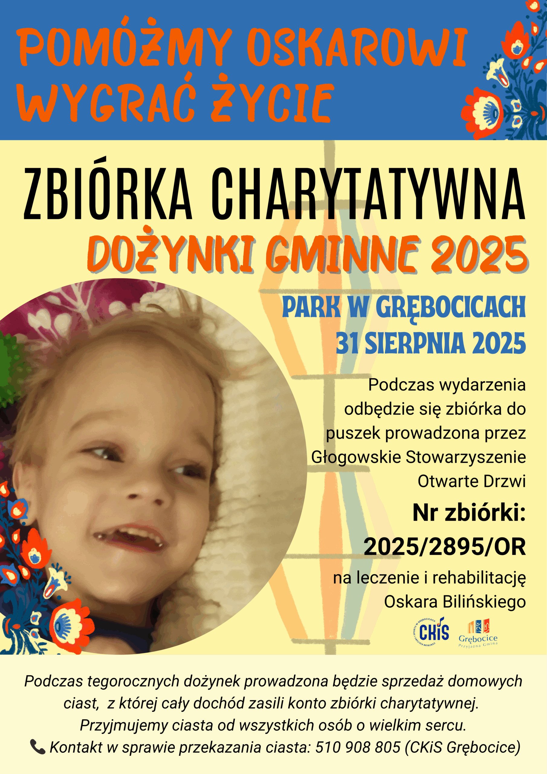 31 sierpnia 2025 podczas Dożynek Gminnych w Grębocicach spotkajmy się w parku i pokażmy, że potrafimy pomagać!