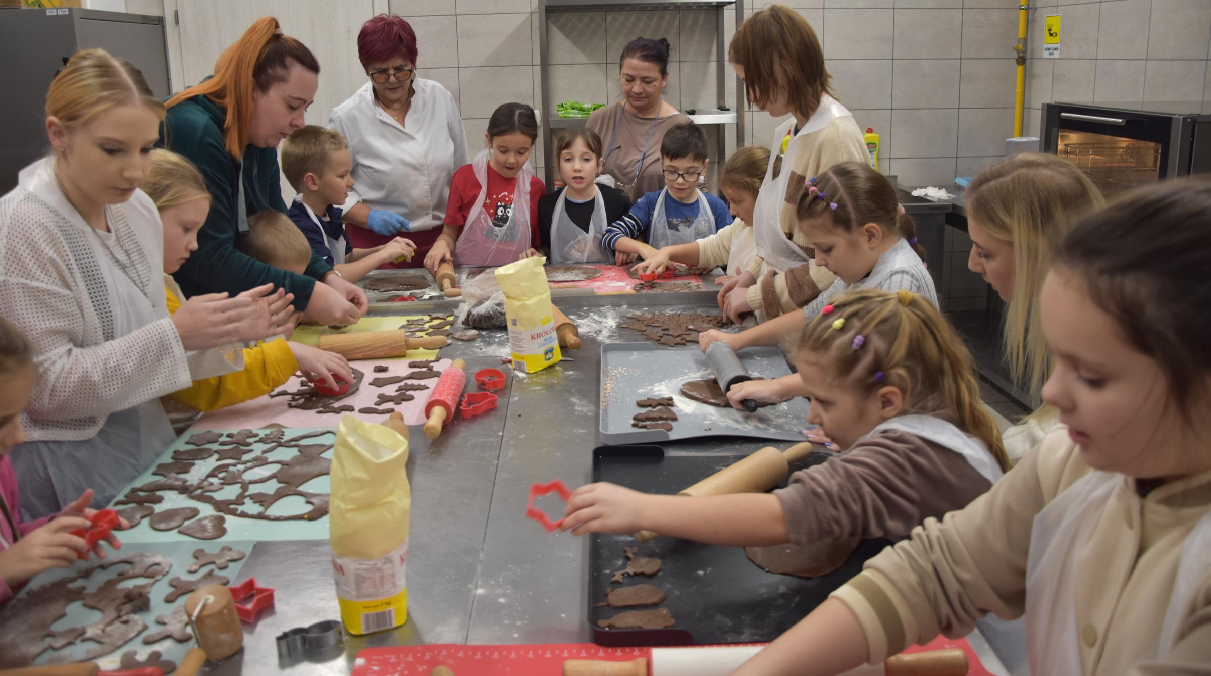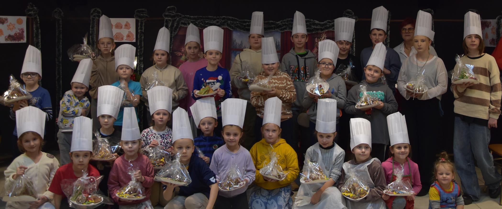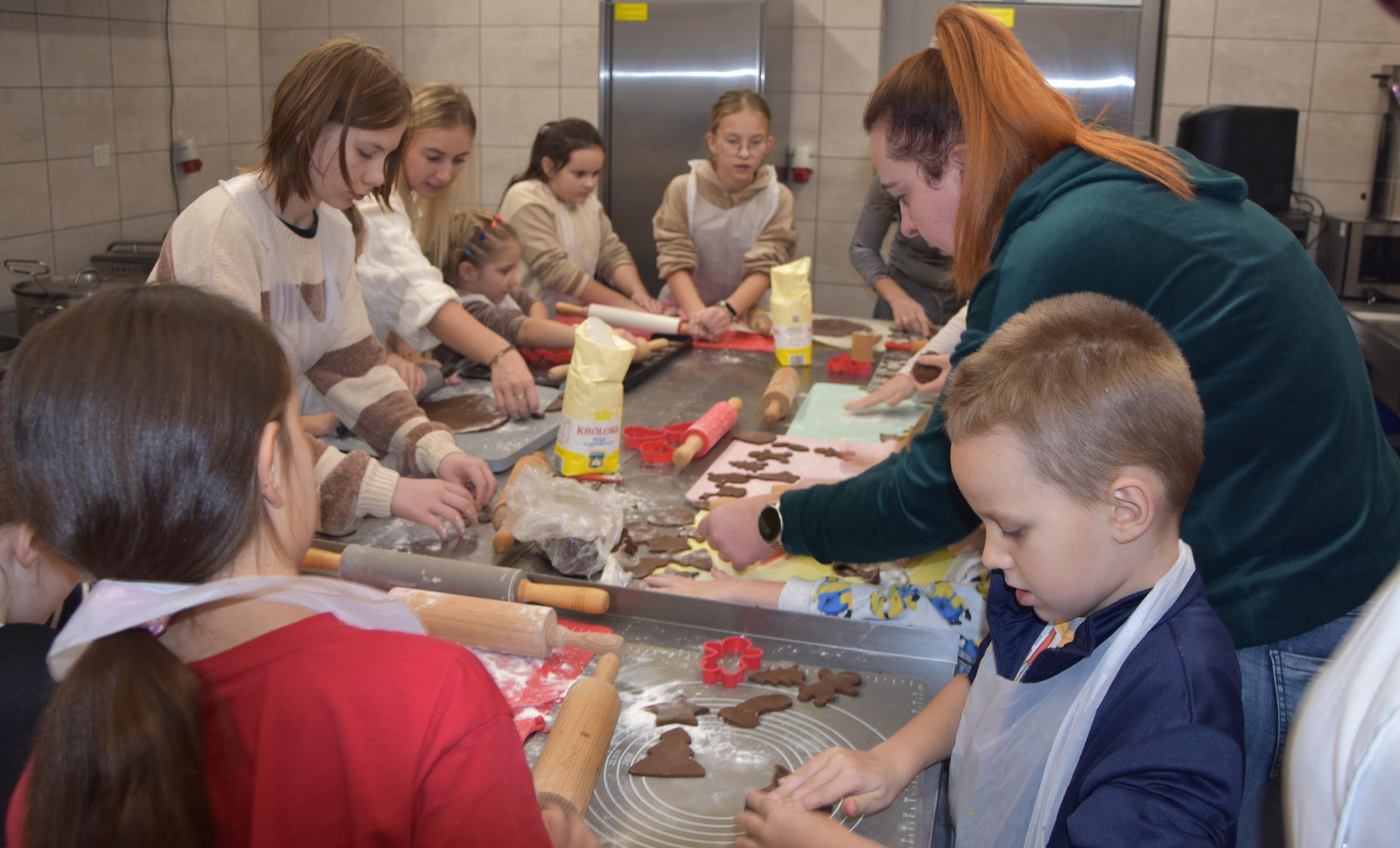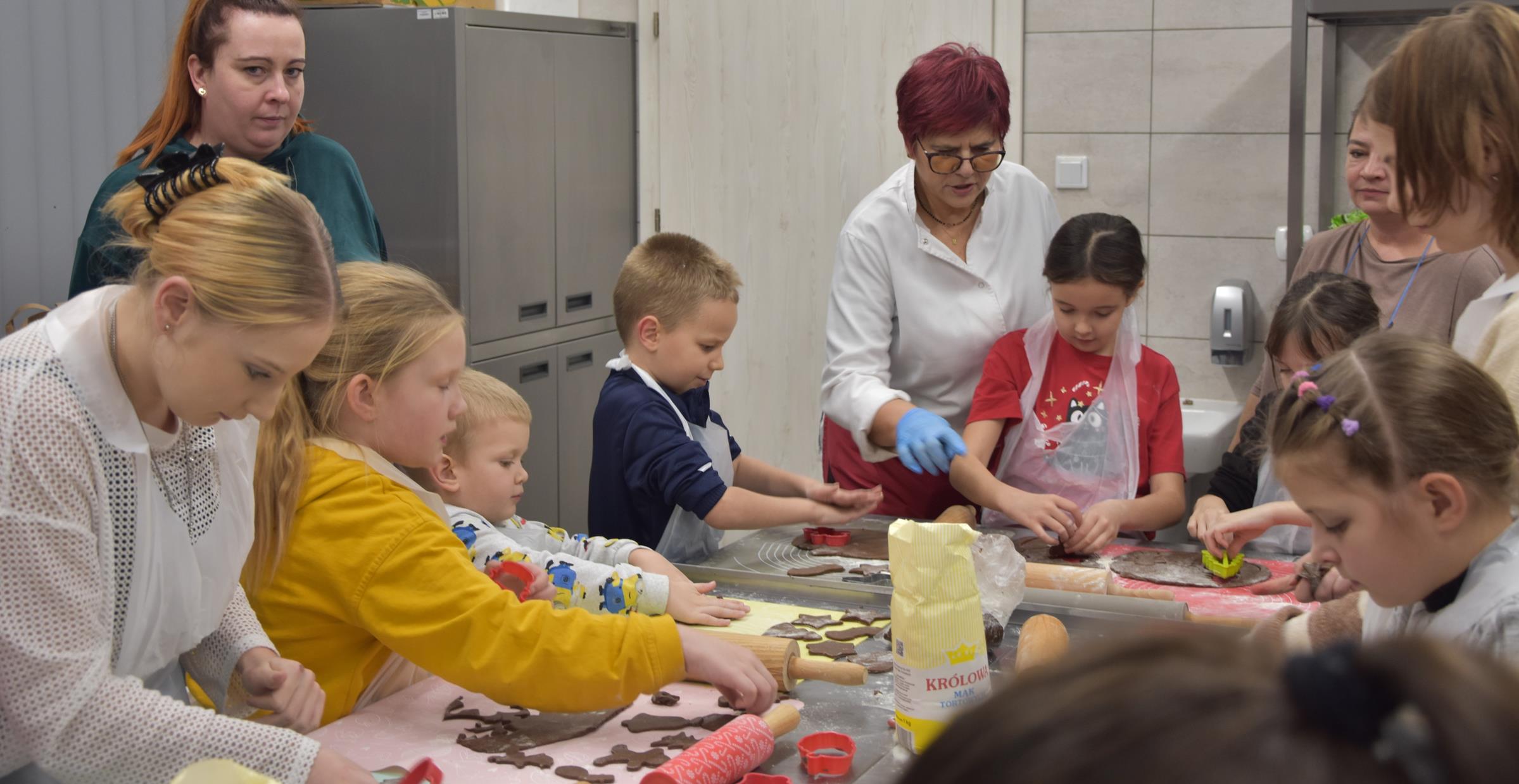 Świetlica wiejska wypełniła się aromatem przypraw korzennych, a uczestnicy z entuzjazmem zabrali się do pracy. Dzieci pod okiem nauczyciela przedmiotów gastronomicznych Małgorzaty Długosz ugniatały ciasto, wycinały kształty, a następnie zdobiły pierniki kolorowym lukrem i jadalnymi ozdobami. Kreatywność nie miała granic – powstały prawdziwe małe dzieła sztuki!