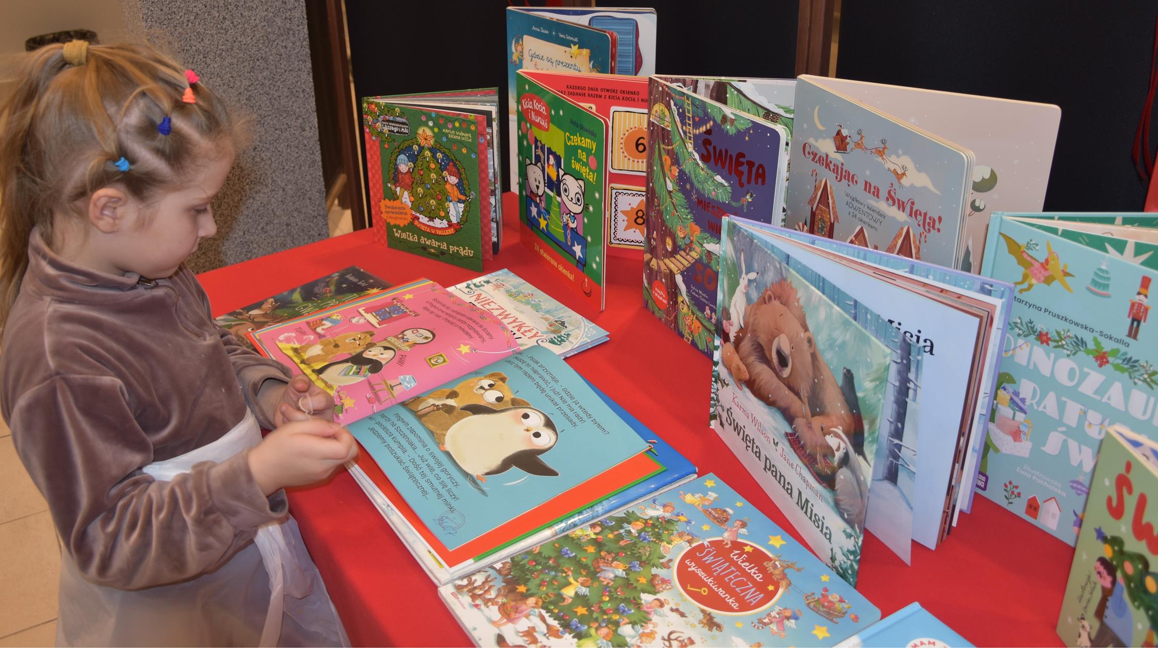 Mobilna Biblioteka zadbała również o literacką oprawę spotkania. Dzieci wysłuchały bajki pt. List do świętego Mikołaja- Joanny Marii Chmielewskiej. Miały też okazję obejrzeć wystawę książek świątecznych zachęcając do ich wypożyczenia! Wszyscy uczestnicy wykazali się wielką kreatywnością, a na zakończenie odbył się quiz nawiązujący do Świąt Bożego Narodzenia.