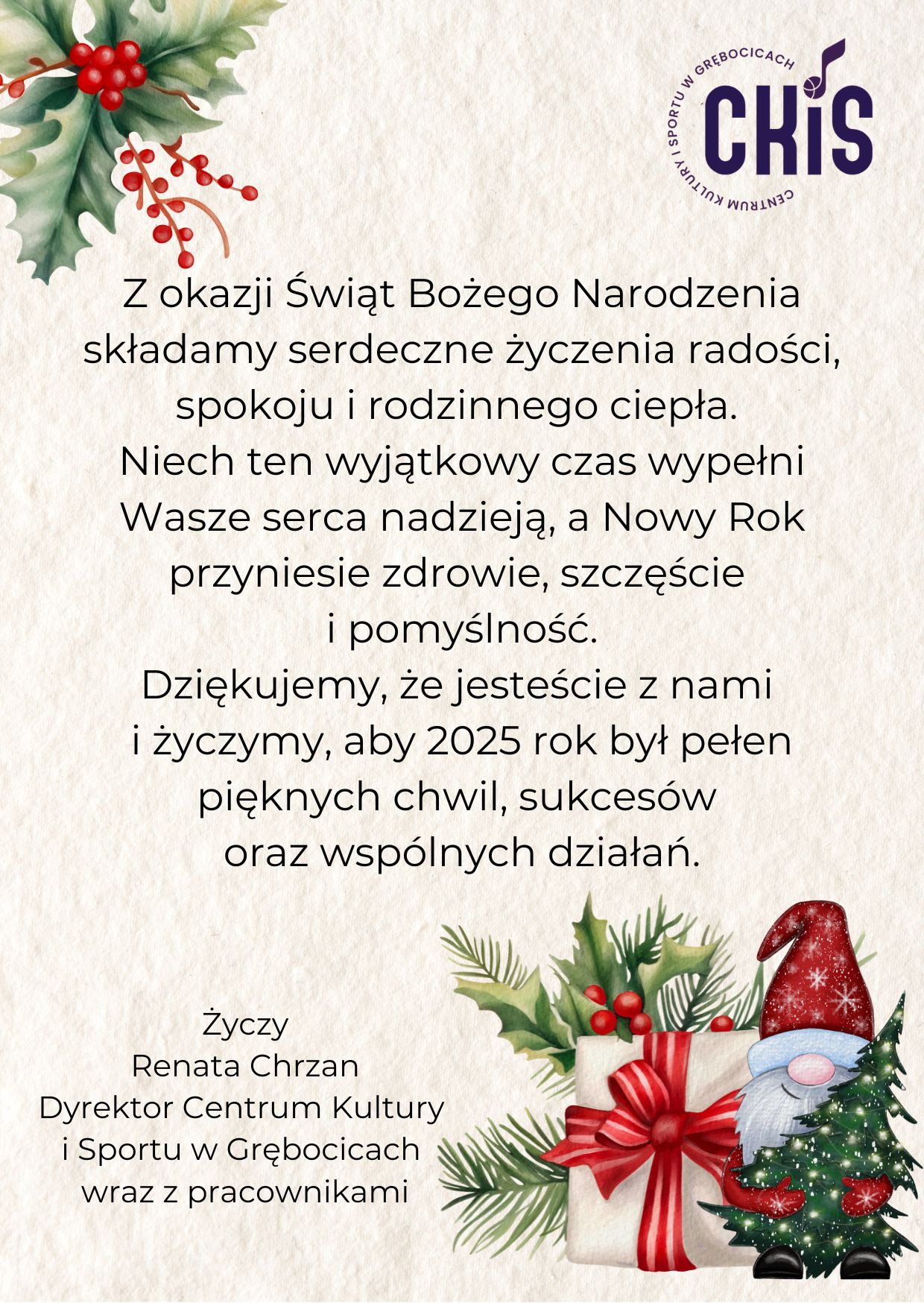 Z okazji Świąt Bożego Narodzenia składamy serdeczne życzenia radości, spokoju i rodzinnego ciepła.